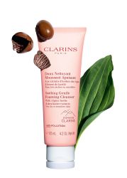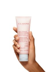 - A fan favourite of those with dry to sensitive skin, this cleanser is enriched with the gentle complex from Domaine Clarins (organic yellow gentian and organic lemon balm), as well as organic chamomile extract to soothe the skin and shea butter extract to help prevent sensations of discomfort. It cleanses the skin and gently removes make-up. Thanks to gentle surfactants, it cleanses while helping preserve the balance of the skin's microbiota.