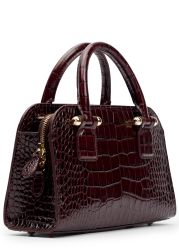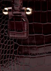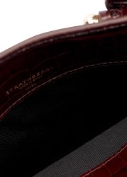 The Georgia Bag from Strathberry embodies timeless sophistication in glossy croc-embossed leather, featuring sleek top handles, a structured silhouette, and the signature bar closure that defines refined elegance.