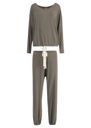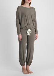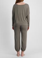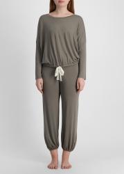 The Gisele pyjama set from Eberjey delivers nighttime comfort with a roomy long-sleeve top featuring a scooped boat neck, drop shoulders, and adjustable ties. Slouchy tapered trousers complete the laid-back loungewear with ease.