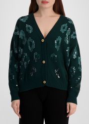 Green sequin-embellished cotton cardigan
