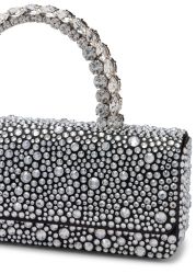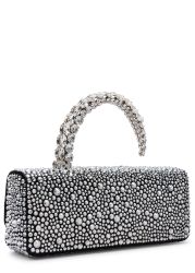 The Hotfix Malika clutch from L’alingi dazzles in a sleek rectangular silhouette, adorned with silver crystals that shimmer with brilliance. A crystal-arched handle completes the design, infusing modern elegance with show-stopping glamour.