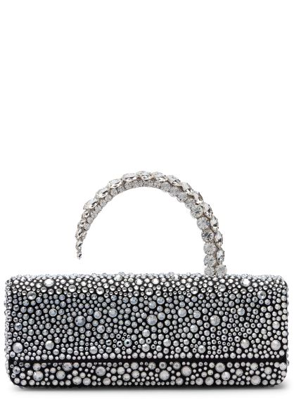 Hotfix malika silver crystal-embellished satin clutch
