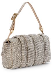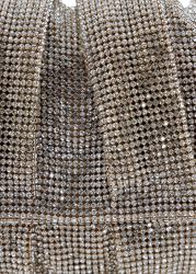 The Iris shoulder bag by Benedetta Bruzziches is a dazzling piece, sculpted in rhinestone crystal mesh in a ruched rectangular silhouette, striking the perfect balance of glamour and artistry.