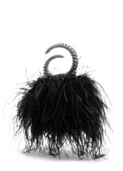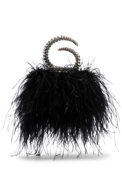 The Karma Feather clutch from L’alingi strikes a balance of whimsy and drama, adorned with soft feathers that exude playful flair. A crystal-arched handle adds brilliance, making it a captivating statement for evening style.