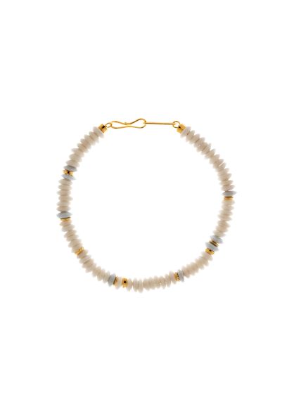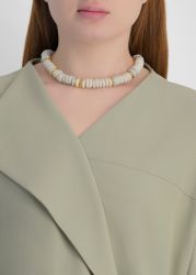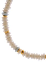 The Laguna necklace from Lizzie Fortunato pairs traditional Ashanti beads with scattered gold-plated rondelles, creating a natural, earthy composition with subtle colour shifts.
