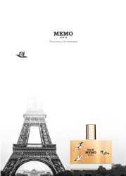 - L-eau de Memo, which was created to celebrate the 10th anniversary of MEMO PARIS, encapsulates the spirit of the brand. On the perfume bottle, birds, symbol of travel and freedom, take flight from a sky that could be that of Paris, the cradle of Memo. The composition is unique and bears witness to an ongoing desire for creation. This fresh, intense and leathery eau de parfum is the result of a harmonious combination of green tea, jasmine absolute and leather.