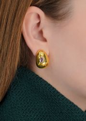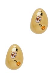 Coated in 24k gold and shaped into a gentle teardrop form, the Mini Arp earrings from Lizzie Fortunato offer a refined glow, with pink amethyst and citrine adding a soft, luminous accent.
