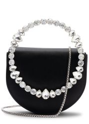 The Mini Lily Clutch by L’alingi offers a chic reinterpretation of the iconic Lily, crafted from luxe satin in a sleek crescent silhouette. A crystal-encrusted top handle crowns the design, turning this compact piece into a radiant statement for glamorous occasions.