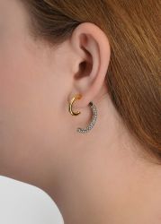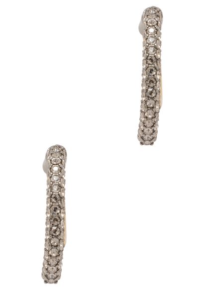 The Mini Pave Luna Earrings from Demarson reinterpret classic hoops with a modular twist, featuring detachable segments where gleaming gold curves meet sparkling crystal embellishments, offering a striking mix of versatility and modern glamour.
