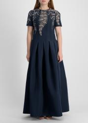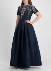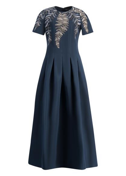 Navy sequin-embellished faille gown