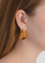 The Organic Hoop Earrings from Lizzie Fortunato pair smooth resin curves with gold-plated brass caps, creating a sculptural silhouette with warm tonal depth.