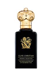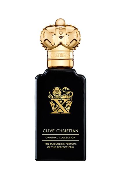 - 20% Perfume Concentration. X Masculine is one of the most unique scents from the house of Clive Christian and a bold statement of olfactory notes adored by men and women all over the world. An exotic and mysterious fragrance combining notes of Cardamom, rich Orris and Cinnamon for a spicy but woody perfume.