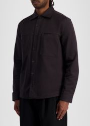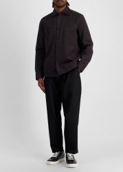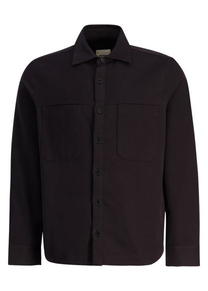 The Ottawa overshirt from Noyoco is crafted from organic cotton; its patch pockets and clean collar are contrasted by a curved hem that adds subtle movement to its otherwise structured utilitarian profile.