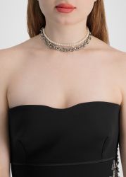 This choker necklace from Simone Rocha intertwines polished chain links with a strand of faux pearls, finished with a dangling pearl charm and a signature egg-shaped branded detail for a refined yet contemporary touch.