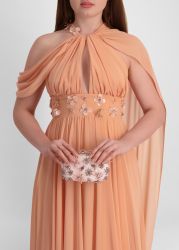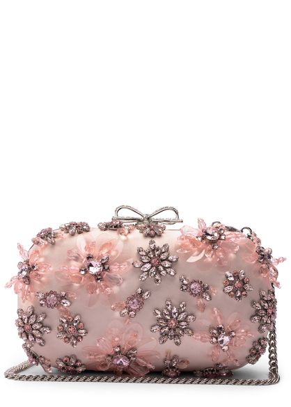 Pink crystal-embellished satin clutch