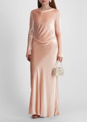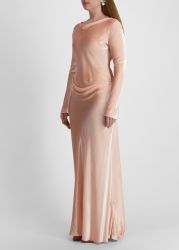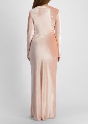 This maxi dress from Alberta Ferretti exudes timeless elegance, crafted from lustrous satin with a draped boat neck, long sleeves, and a bias-cut skirt that falls into soft gathers for graceful movement and a sculptural silhouette.
