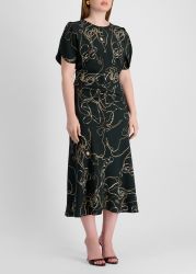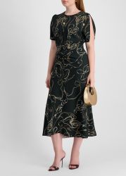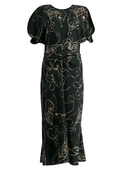 This midi dress from Victoria Beckham turns heads with its sculptural sleeves and fluid stretch jersey construction. The abstract print adds a touch of modern artistry, while precise ruching at the waist defines the silhouette with effortless sophistication.