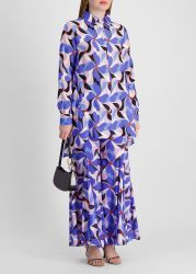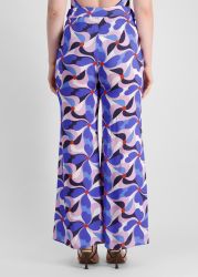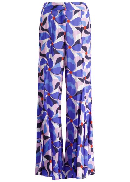 These trousers from Isa Belle turn heads with their bold, retro-inspired floral print in vibrant shades of blue, lilac, and red. Cut in a fluid wide-leg silhouette with an asymmetric hem, this signature pair moves beautifully with every step, adding effortless flair to sun-soaked escapes.