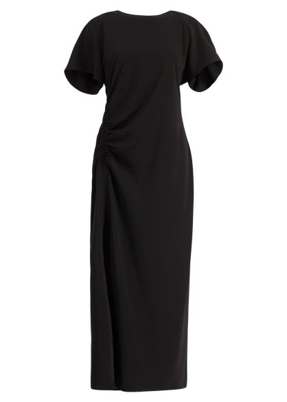 The Saalbero maxi dress from Samsøe Samsøe is crafted from smooth fabric with a softly structured drape, featuring short sleeves and ruched gathering at the side that accentuates the silhouette before falling to a split hem.