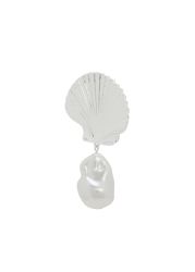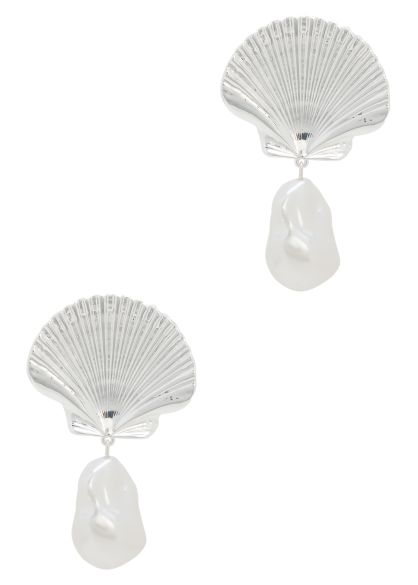 The Scallop drop earrings from éliou feature intricately detailed shell studs that cascade into lustrous resin baroque pearls, evoking an elegant coastal allure.
