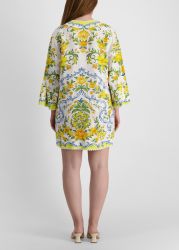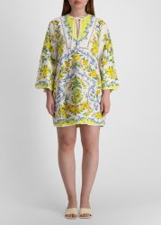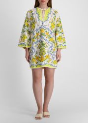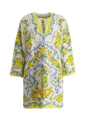 The Sicily Mini Dress from Farm Rio is a sunshine-soaked staple, featuring vibrant blooms across a breezy linen-forward fabric. With a relaxed silhouette, split neck with ties, and wide sleeves, this cover-up dress is the perfect piece to take from beachside lounging to city strolling.