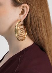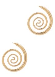The Spiral Serpent hoop earrings from Panconesi reinterpret the classic hoop through hypnotic gold-tone spirals, evoking a serpent-inspired silhouette with dramatic, statement-making presence.