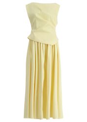 The Stopes dress from Acler pairs soft structure with graceful movement, featuring an asymmetric neck and artful draping that wraps the sleeveless bodice in sculpted ease. A gathered skirt falls into a fluid, ankle-sweeping silhouette, creating a refined balance between classic tailoring and effortless charm.