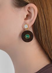 Taj disc gemstone-embellished wood drop earrings