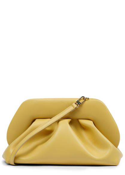 Tia yellow ruched faux leather clutch