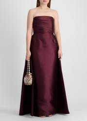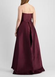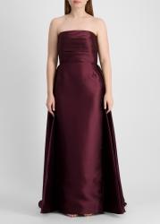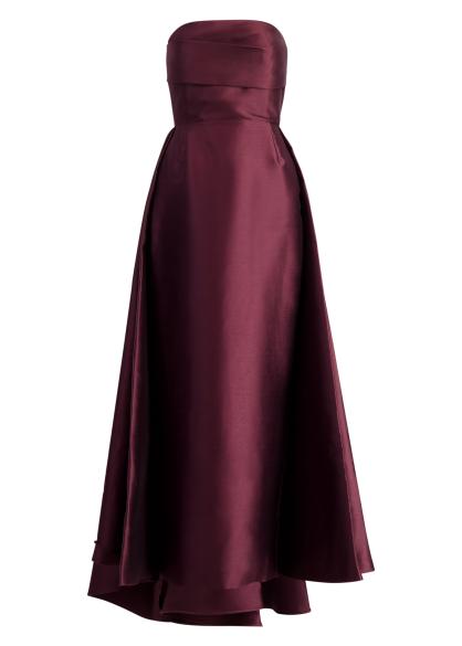 Elegant in its simplicity yet commanding in presence, the Tiffany gown from Solace London features a strapless bodice that hugs the torso before flaring into a dramatic full-length skirt with pleated side panels.