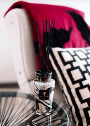The Totem Marble diffusers are hand-blown by our glass artisans. In reference to the color scheme of precious marble, their ceramic caps are black and silver in accordance with the bottles.