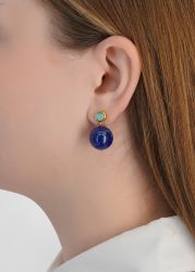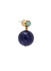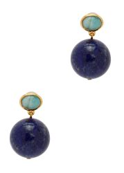 The Umbria earrings from Lizzie Fortunato pair smooth amazonite tops with hanging lapis spheres, creating a vivid play of colour in a clean drop silhouette.