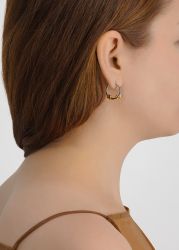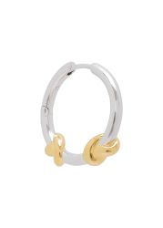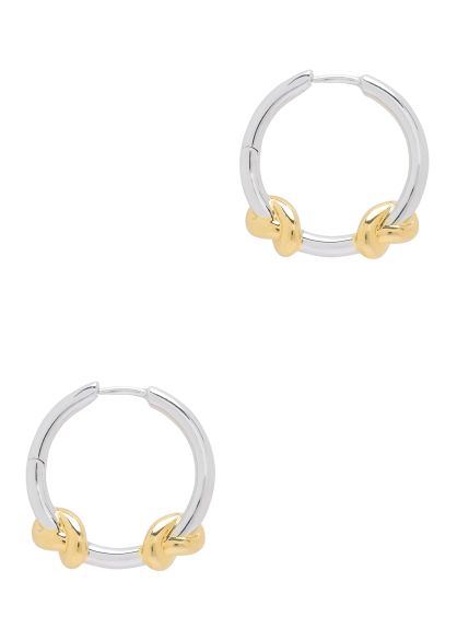 The Missoma X Lucy Williams hoop earrings feature a polished silver-toned silhouette accented with two gold-plated knots, bringing sculptural contrast and modern elegance.